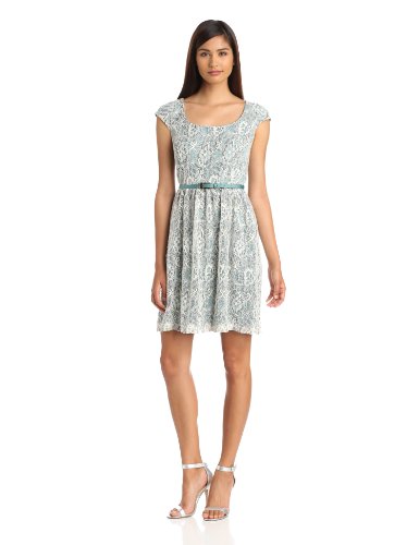 NEW! Ivy & Blu Maggy Boutique Women's Scoop Neck Lace Dress With Belt, Sea Mist Multi, 10 best price